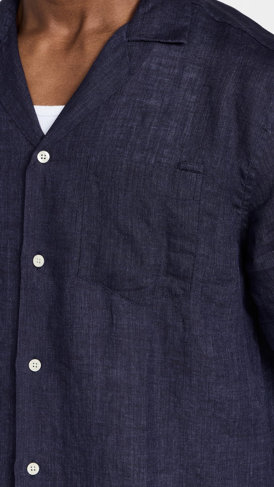 Collared neckline and button placket, Short sleeves, Patch breast pocket